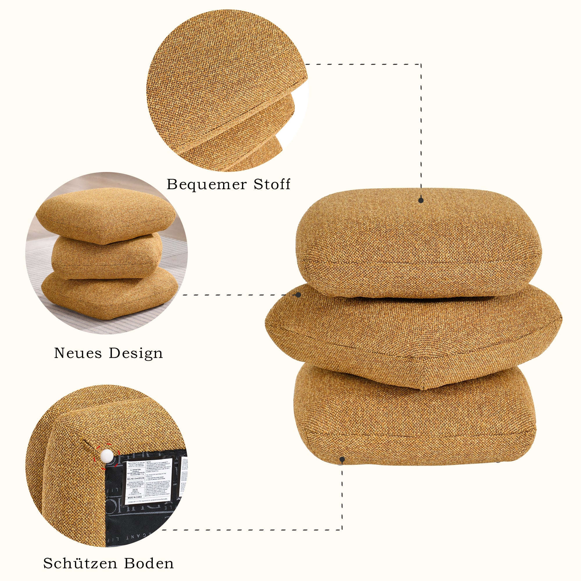 Duhome Sitzhocker aus Bouclé Stoff Ottoman 360° Drehbar Polsterhocker Modern Hocker