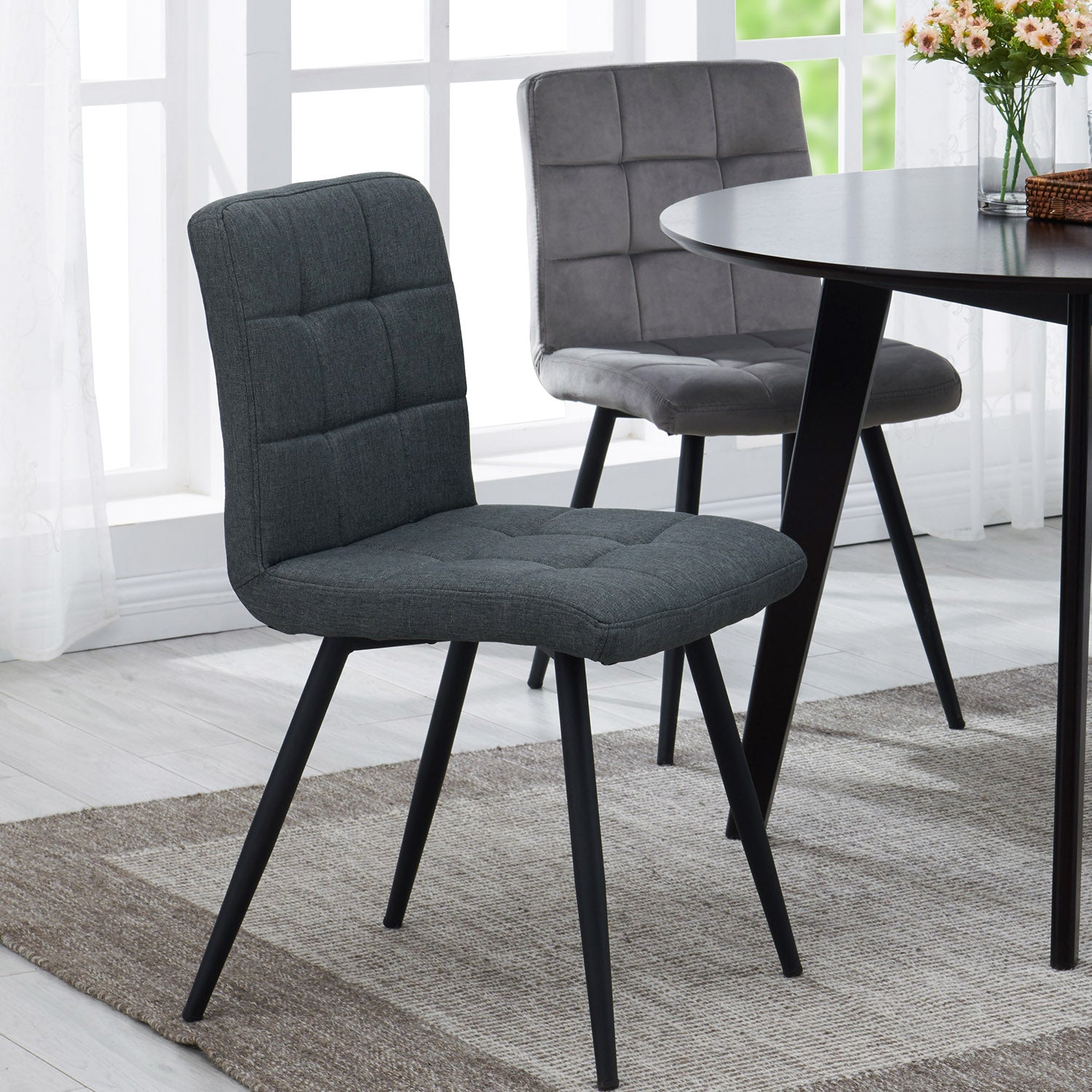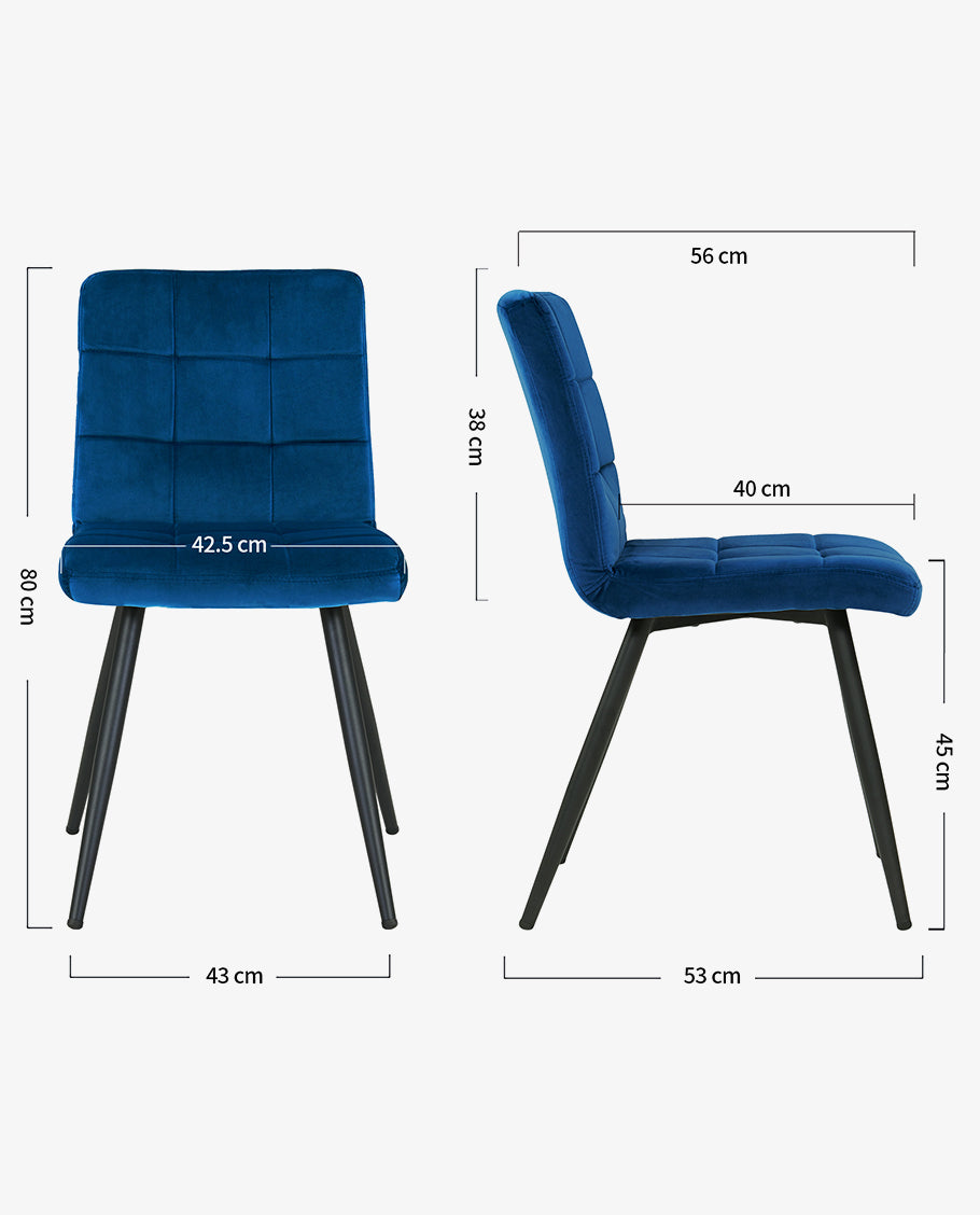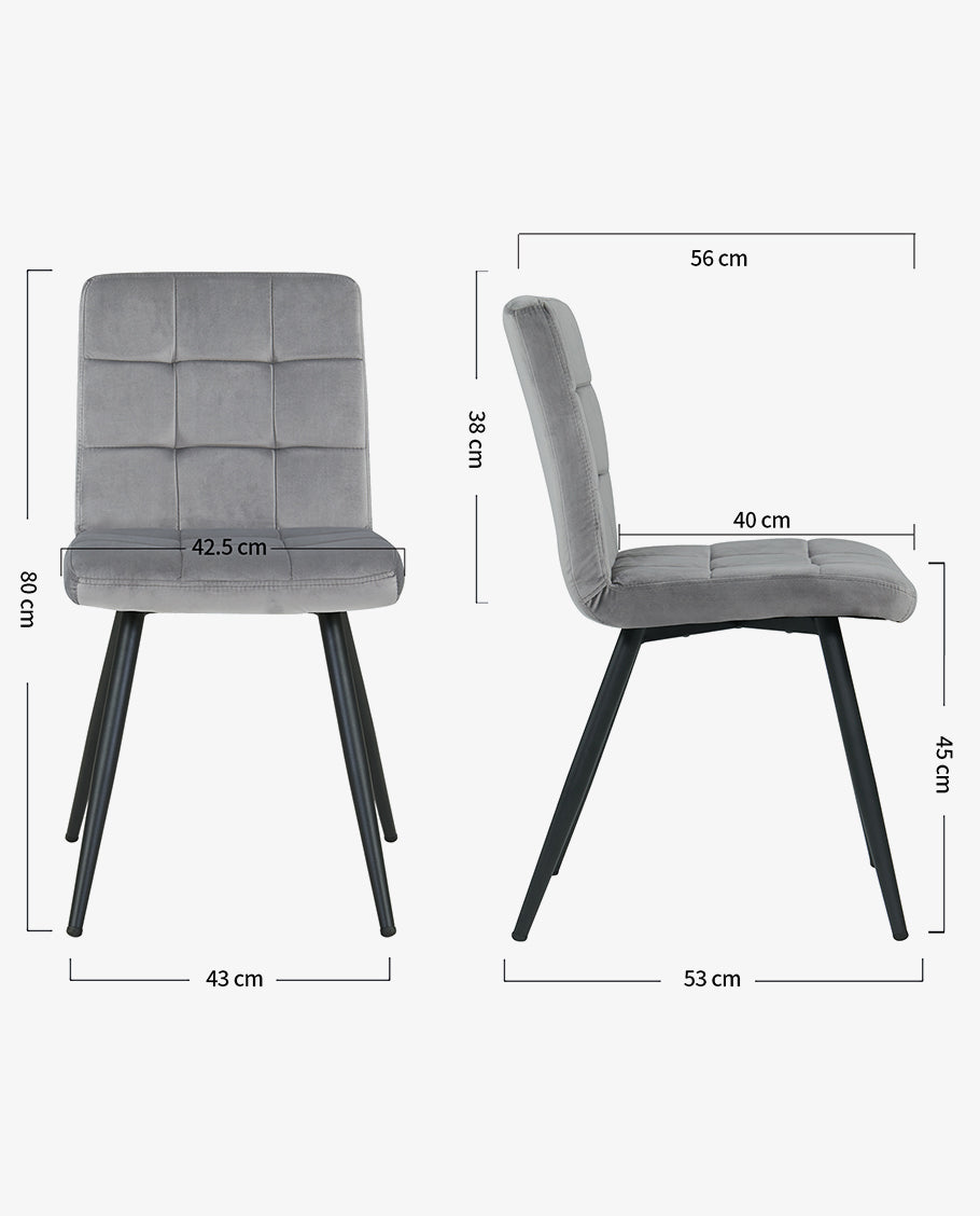 2er Set Esszimmerstuhl aus Stoff Samt Farbauswahl Stuhl Retro Design Polsterstuhl mit Rückenlehne Metallbeine Duhome 8043B
